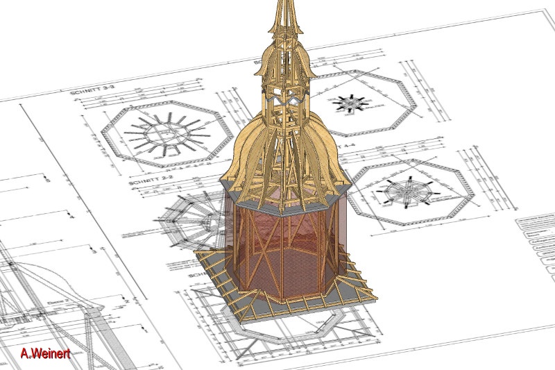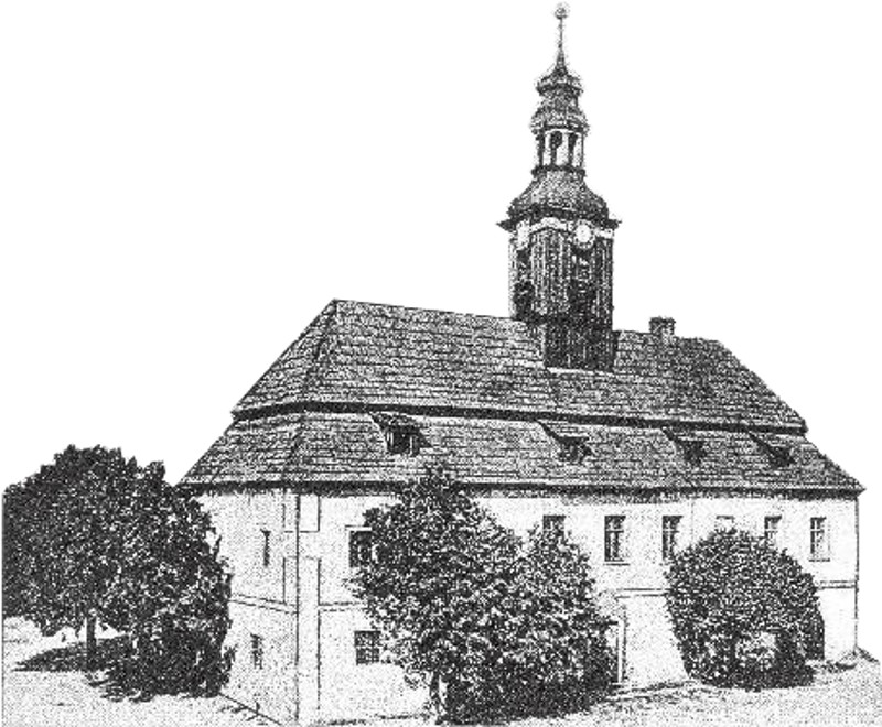 Erkennbar die zwei Gebäude hintereinander und der Turm in der Mitte.