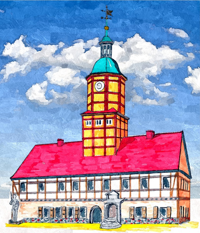 Das alte Rathaus mit seinem Turm, nicht zu verwechseln mit der sogenannten Warte des Ausspähens, sondern des Glockenturms. Die Anordnung des Turms in der Mitte des Hauses kann man auf einer Rundkarten kursächsischer Waldgebiete (bekannt als Humelius-Risse, Kreiskarten für Jagd- u. Forstzwecke 1560) von Johannes Humelius 1518-1562 sehen. Diese Turm Art ist als Sonnenturm bekannt, sie ist meistens mit Kupfer gedeckt wurden und hatte einen goldenen Hahn es stand ungefähr auf dem heutigen Grundstück von Herrn Lothar Lehmann. Der Abschluss des Turmes bildete eine Welsche Haube. Aufstellungen von Rolandfiguren sind erst im 14. Und 15. Jahrhundert urkundlich nachweisbar, dabei handelt es sich aber nicht um Neuaufstellungen sondern um Rechnungen die sich auf die Reparaturen oder das Ersetzen hölzerner Figuren beziehen. Der Wahrenbrücker Roland hat nichts mit der Vergabe des Stadtrechtes zu tun sondern er ist ein Symbol des Kaiserrechtes (schriftsässiger Ort) des neu aufgelebten Karlskultes unter Karl IV. gewesen. 1340 erhielt Wahrenbrück das Stadtrecht, so könnte unser Roland schon ca. 1350 vor dem Rathaus gestanden haben, somit strebten die Städte nach Loslösung von den geistlichen Stadtherren um die Reichsunmittelbarkeit zu erlangen. Als Kaiserrechtsymbol ist dieser Roland dem politischen, geistigen und rechtlichen Leben im späten Mittelalter zu verstehen, Schützer und Bewahrer des von Gott verliehenen Kaiserrechts und soll hier noch bis 1608 gesehen worden sein, kann man bei Lorenz Peckenstein lesen. Dies stimmt aber leider nicht. Bei Arnold Gerhard Deneken (1759–1836) stand unter "ungenau oder irrthümliche aufgeführte Rulandsorte" Arebrück "vielleicht Wahrebrück an der schwarzen Elster": allein hierfür ist zur Zeit kein Zeugniss vorhanden. 1637 wurde Wahrenbrück durch einen großen Brand zerstört, in dieser Zeit verschwand auch dieser Rathausturm. Hier handelt es sich um einen sogenannten Profanbau es ist ein Bauwerk oder ein Gebäude, für weltliche Zwecke. Der Begriff wird beispielsweise innerhalb der Architekturgeschichte verwendet, um öffentliche Gebäude und deren Nutzungen voneinander abzugrenzen. Belfriede wurden zur Zeit der Gotik gebaut und gehörten zu den bedeutendsten Profanbauten des Mittelalters. Vorher standen dort meistens hölzerne Türme, von denen keiner erhalten ist. Als Symbol der bürgerlichen Macht wurden sie von weltlichen Stadtbehörden oder den Zünften gegenüber der Kirche errichtet. Entweder waren sie mit dem Rathaus seitlich, mittig oder vorn anhängend verbunden oder standen freistehend daneben. Als Belfried wird ein hoher, schlanker Glockenturm bezeichnet, der besonders für flämische Städte typisch ist. Die Besiedlungsgeschichte in unserer Gegend ist gezeichnet durch die Verschmelzung von Slawen, Deutschen und Holländern die besonders im Bauhandwerk wie Brücken, Mühlen und Kirchen ihre Früchte trug. Dazu muss man aber sagen das die Slawen auch Meister der damaligen Baukunst waren und viele ihrer Kunstwerke im Holzbau bzw. Fachwerkbau wurden den Deutschen zugeordnet. Im Turm befand sich meist das Stadtarchiv, das Gefängnis oder die Schatzkammer und war in der Regel der sicherste Ort der Stadt. Natürlich auch als Wachturm um Brandherde schnell zu lokalisieren oder öffentliche Angelegenheiten kund zu tun. Hierfür setzte man Türmer ein, die wahrscheinlich auch ihren Wohnsitz hier hatten. Ab dem 16. Jahrhundert setzte man eine Stadtglocke ein, diese gab die Öffnungszeiten von Stadttoren, Gerichts- und Marktzeiten und andere wichtige Zeiten des Tages und der Nacht an sie wurden von den Türmern eingeläutet. Im 13. Jahrhundert erfand man die ersten mechanischen Uhren, die so genannten Räderuhren. Diese waren mit einem Zeiger die ersten Vertreter einer modernen Messung der Zeit. Damit wurden die seit Urzeiten wetterabhängigen Sonnenuhren genauso verdrängt wie die Wasser- und Sanduhren, die für das Messen eines längeren Zeitraums völlig ungeeignet wurden.