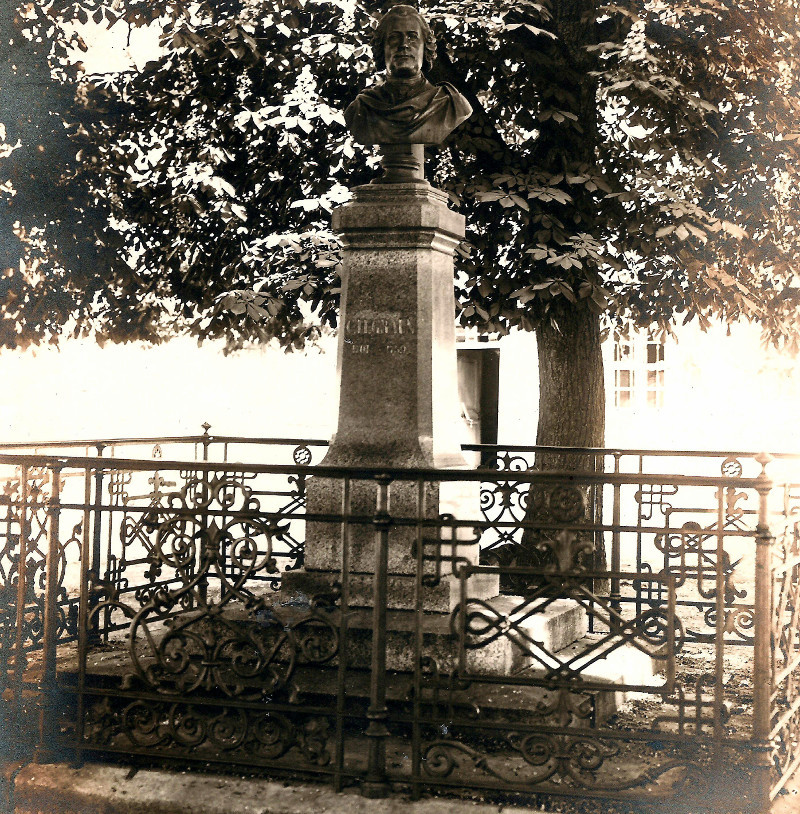 Im Jahr 1846 wurde durch Rektor Jülich aus Liebenwerda und Cantor Beyer vom Gesangverein Liebenwerda eine Graun-Stiftung gegründet. Kaufmann Burkhardt aus Wahrenbrück sammelte in Wahrenbrück Geld und beschloss mit den Wahrenbrückern, hier ein Monument zu errichten. Bürgermeister Hase hatte früher schon einen Platz vor dem Graunhause mit Kastanien schmücken lassen. Am 29. September 1867 war die Grundsteinlegung des Monumentes. Durch intensiven Bemühungen des Philos. Prof. und Historiographen, der Brandenburger Gesch. Lehrer am Friedr. Wilh. Institut war, Dr. Erdmann Preuß konnte am 20. Juni 1869 das Graun-Denkmal eingeweiht werden. Der einzige lebende Nachkomme Grauns, der Geheime Oberregierungsrat von Korff aus Merseburg, war auch anwesend. Die bronzene Büste nach Professor Hugo Hagens Modell (Rauchs Nachfolger) wurde in Lauchhammer gegossen und war als erstes fertig. Das Postament fertigte, nach Hagens Zeichnung der Bildhauer Spaarmann in Dresden. Der einzigartige Zaun, mit seinen wunderschönen Formen den es in dieser Form kein zweites Mal gab und gibt, war wohl als letztes I-Tüpfelchen angebracht worden. Das Bild mit den Einzelheiten ist eine Rekonstruktionszeichnung nach einer Fotografie von Alfred Ruhig aus Liebenwerda i/S. von 1922. Graun schaute damals zur Stadt, im Hintergrund die Schänke von ?, heute Familie Schneller. Wenn man genau hinsieht wurden hier 53 Jahre nach der Einweihung schon einige Teile des Gusseisernen Zauns demoliert. 1945 ist dieser völlig zerstört, ob nun von Wehrmachts-Angehörigen oder den Russen ist leider nicht bekannt. Teile davon sollen noch lange hinter dem jetzigen Rathaus gelegen haben.