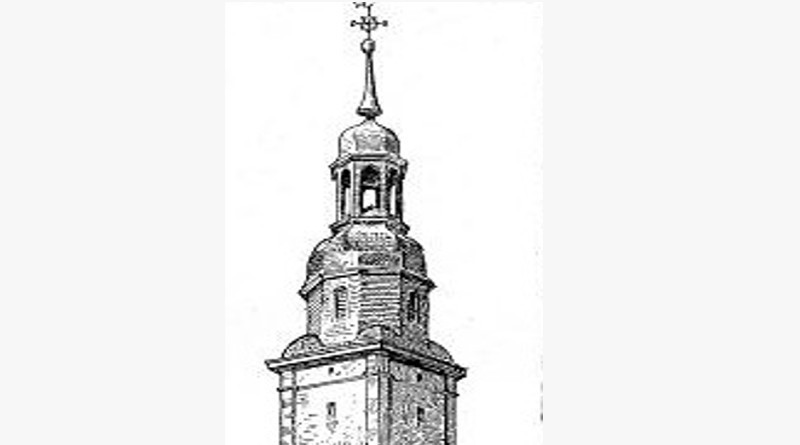 Erkennbar die zwei Gebäude hintereinander und der Turm in der Mitte.